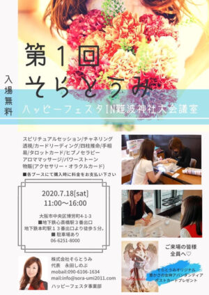 そらとうみ主催の癒しイベント「Happy Festa in難波神社」が大阪メトロアプリで紹介されました。 2025 9/25 メディア・書籍 2020年7月10日2025年9月25日 URLをコピーしました! そらとうみ主催の癒しイベント「Happy Festa in難波神社」 そらとうみ主催の癒しイベント「Happy Festa in難波神社」が大阪メトロアプリで紹介されました。大阪・京都・滋賀・東京にて、卒業生を中心としたイベントを多数開催。 メディア・書籍 この記事が気に入ったら いいねしてね! よかったらシェアしてね! URLをコピーしました! URLをコピーしました! 「癒しフェアin大阪」出展者インタビューが掲載されました。 「社長の履歴書」に代表永田しのぶのインタビュー記事が掲載されました。 プロフィール Shinobu Nagata 関連記事 そらとうみが「日々の不安や迷いをやさしく照らしてくれる、信頼できるスピリチュアル・占い系メディアやサービス」に選ばれました。 2025年9月25日 サクフリ株式会社のサクフリブログに掲載されました 2025年5月2日 永田しのぶ初の著書が三楽舎プロダクションより出版されました。 2023年11月13日 永田しのぶインタビュー記事が掲載されました。 2023年8月24日 『あなたの運を上げ願望を叶える専門家ベスト34人』(三楽舎出版)にトップで掲載されました。 2023年5月14日 「社長の履歴書」に代表永田しのぶのインタビュー記事が掲載されました。 2022年7月26日 「癒しフェアin大阪」出展者インタビューが掲載されました。 2014年3月20日 『見つかるマイセラピスト~ワタシだけの「癒やしのスペシャリスト」関西カウンセラー・セラピスト名鑑』(本の泉社)に選ばれ掲載されました。 2012年3月16日